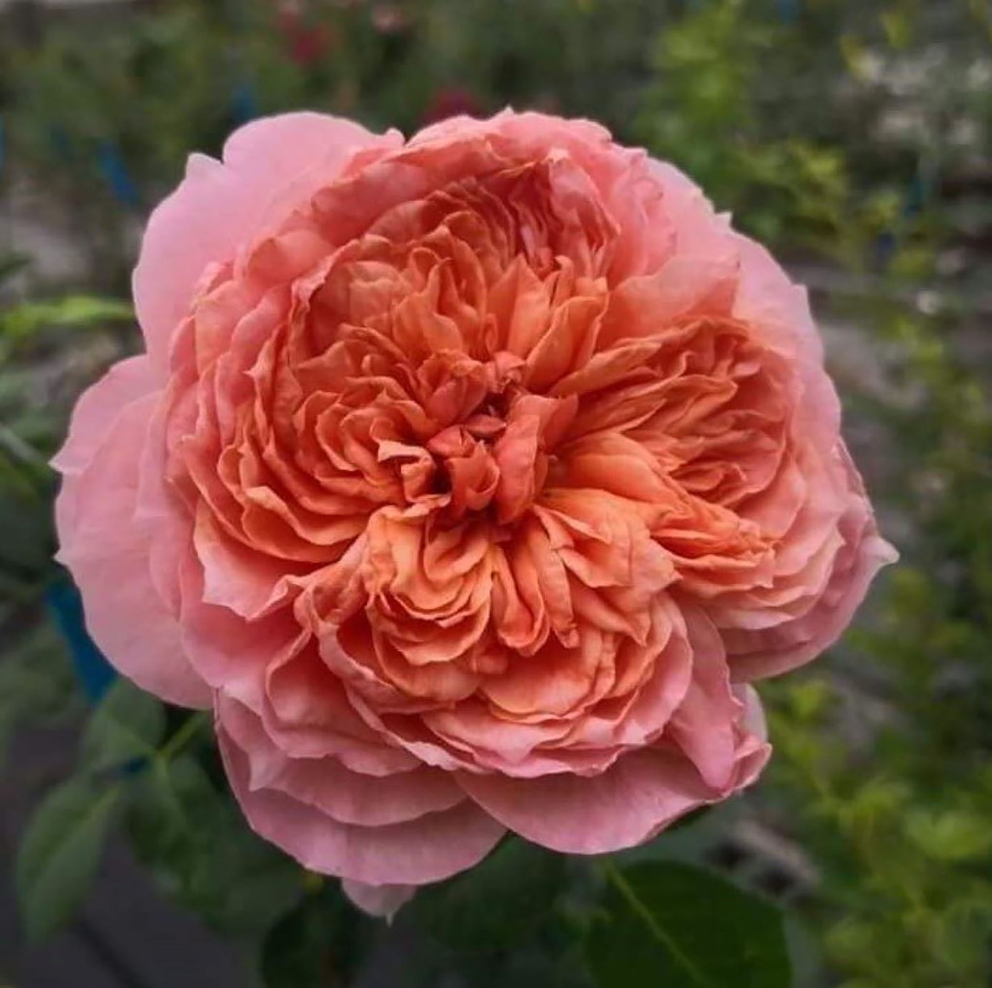 Moulin de la Galette rose has pink flowers with an orange tint, and a diameter of 9-12 cm. It is a shrub rose that blooms repeatedly throughout multiple seasons, with a moderate fragrance and a deep cup-shaped flower. This rose variety exhibits strong disease resistance, heat-tolerant, and reaches a height of 150-250 cm.