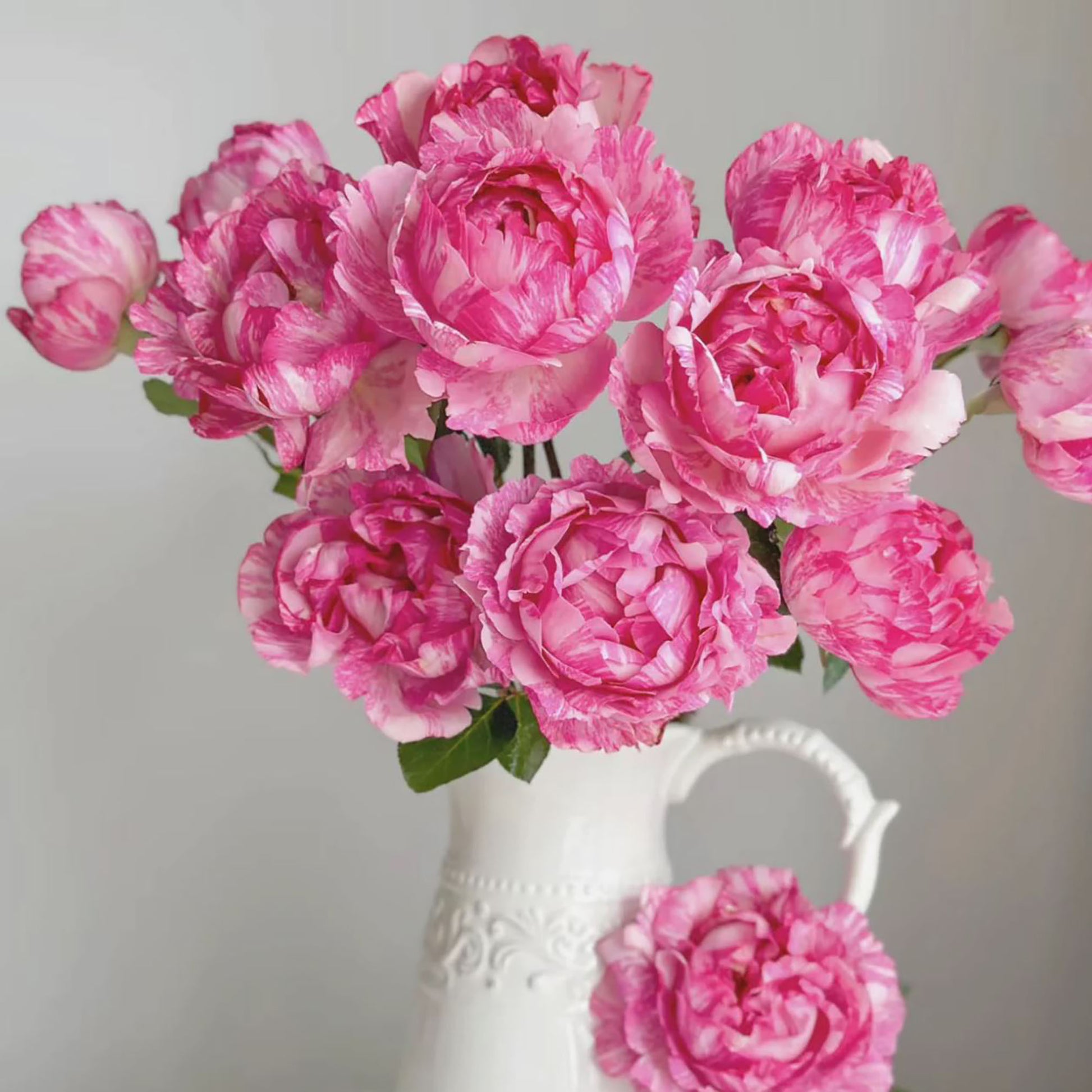 Yves Splash Rose features pink-striped blooms with a diameter of 8-10 cm. The plant reaches a height of 80 cm, emitting a strong fragrance. With relatively flexible stems, it blooms diligently throughout multiple seasons. It is a striped rose variety in the Yves series, showcasing a charming and fragrant addition to gardens or cut flower arrangements.